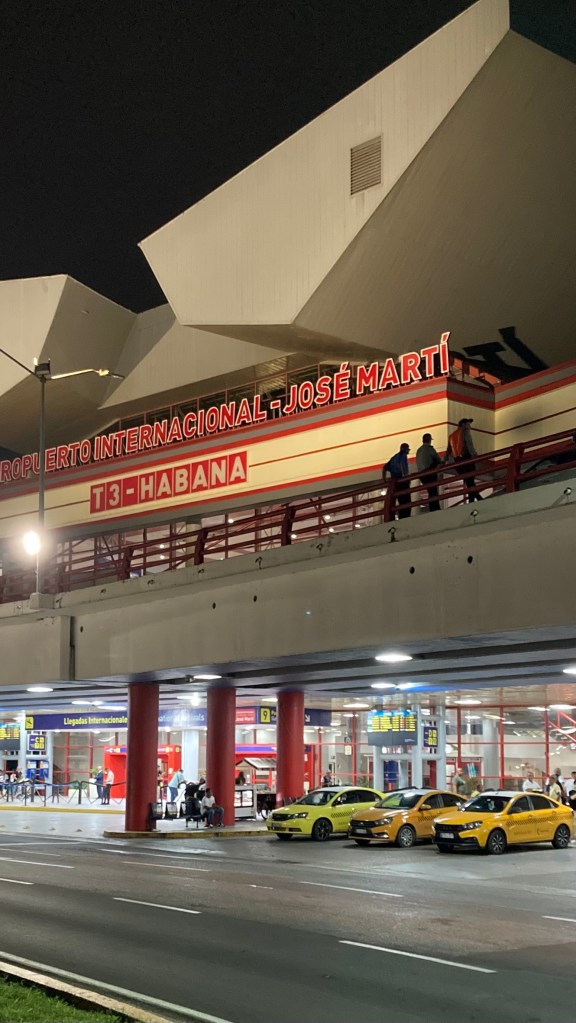 Ook de gate naar Havana op de luchthaven van Madrid bevindt zich in de meest provisorische en afgelegen hoek van de luchthaven. Het kost ons een half uur om lopend te bereiken. We hijgen van het snelle lopen, want de overstaptijd is kort. Ik reis met mijn vrouw en mijn twee jongvolwassen kinderen en dat is de eerste keer sinds ons bezoek aan de Azoren drie jaar geleden. Het is 15 oktober 2025, Brak arriveren we aan de andere kant van de oceaan. Al snel stroomt het zweet van ons af, zoals te verwachten viel. Er zijn geen overdekte buizen tussen toestel en voetgangerstraverse zoals op Schiphol; Vanaf een trap stappen we direct de van kerosine en hitte verzadigde buitenlucht in en daarna de stilstaande hitte binnen van de aankomsthal die ruikt naar WC’s en naar stof en oud papier. De vormgeving is die van een groot en obsoleet veertig jaar oud buurthuis met beige tegelvloeren, matwitte muren en dofrode ijzeren hekjes. Cuba mi destinación lezen we. Er staat een lange rij van mensen verloren in doffe berusting waarin we aanschuiven. Er valt geen enkele beweging te bekennen. Niemand klaagt, niemand maakt haast. Geen winkels, geen barretjes, geen opschriften. Ik bereid mij voor op een lang en naargeestig voorportaal van de hel zonder vers drinkwater, zonder zitjes en zonder verlossing maar tot ieders verbazing komt die verlossing toch vrij snel. Met weinig plichtplegingen worden we het land binnen geloodst. In plaats van de gevreesde stempel in ons paspoort die ons bezoek aan bijvoorbeeld de VS lastig kan maken, krijgen we een inlegvelletje en later een gemakkelijk verwijderbaar stickertje aan de harde buitenkant van onze paspoorten. Welkom in Cuba, zegt de kleine vrouw en ze produceert er een matte glimlach bij.