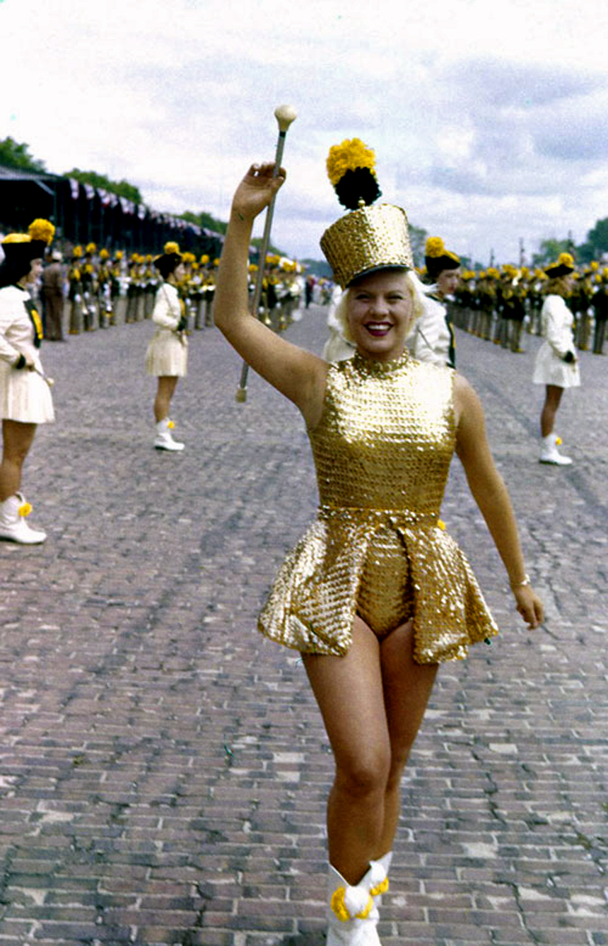 Het eerst waren ze te zien eind jaren dertig, toen vrouwen af en toe de trom mochten slaan in militaire drumbands. Eerst heetten ze drum-majorettes, toen majorettes. Grote groepen drumslaande vrouwen in show-uniformen zie je steeds minder, pompongirls en cheerleaders steeds meer. Dat laatste spreekt meer aan, omdat er meer sportieve vaardigheden mee gemoeid zijn en dus een afwisselender patroon biedt. Portret van een Zuilense majorettegroep, waar de moeders hun dochters nog mooi maken voor de optocht.