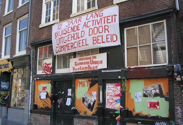 Naschrift (2012): Op 8 april 2005 ontruimde de politie het pand eerder dan verwacht, daags na een demonstratie tegen de voorgenomen ontruiming van ‘de Vismarkt’ en een ander pand, de voormalige legerdump aan het Vredenburg.
