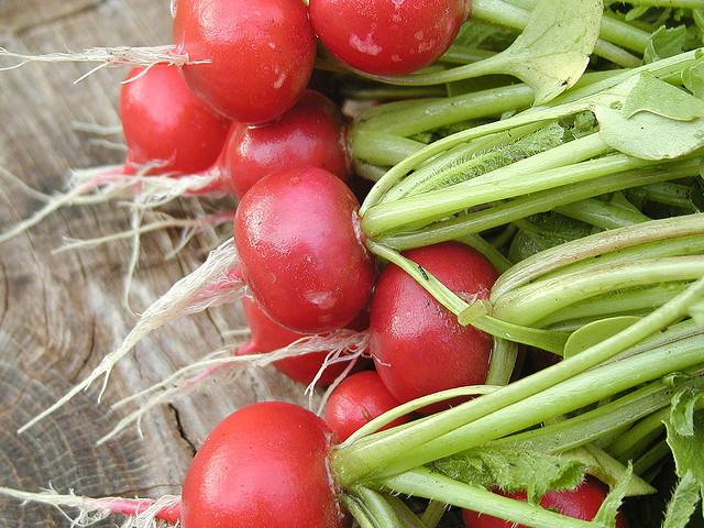 Radijssap reinigt de galblaas en nieren. De monniken in de middeleeuwen wisten dat al. Eigenlijk onmisbaar bij het zware, zoute, vette wintereten dat we deze maanden gaan consumeren. Snijd het loof er af, dan blijft het veel langer vers en knapperig. Heerlijk door salades, als pittig accent tussen bijvoorbeeld romige mozzarella, veldsla en paprika’s uit het zuur.