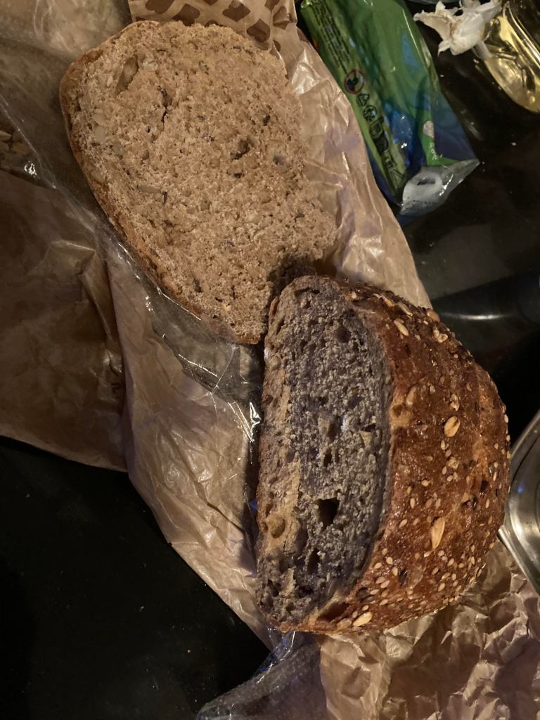 Wacht niet tot je brood beschimmeld is. De gewone broodschimmels (groen en zwart) bevatten te weinig gifstoffen om je gelijk ziek te maken, maar je wordt wel degelijk ziek als je er veel van eet. Gewoon weggooien dus als het zo ver is. Om dit te voorkomen, kun je het brood beter droog laten worden en niet verpakken in plastic. Eet smakelijk!